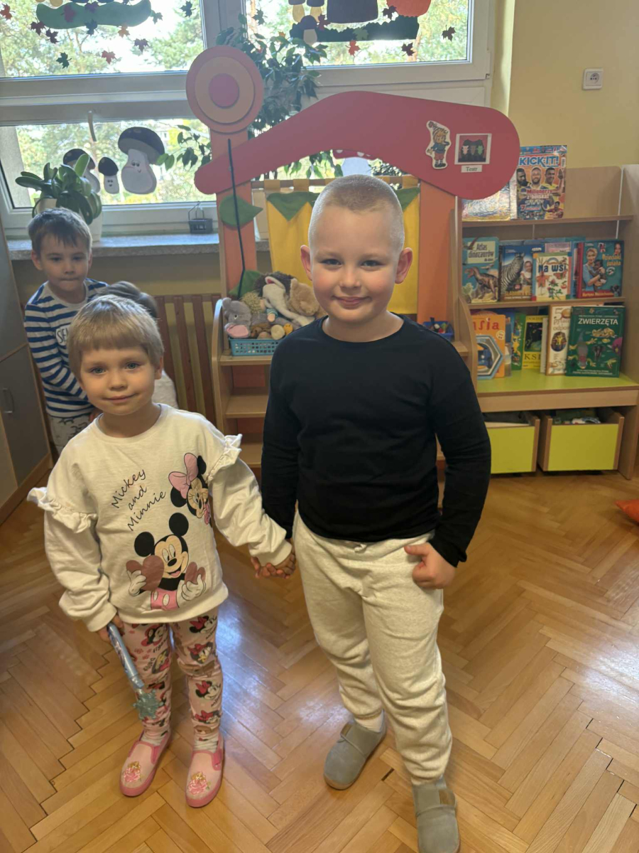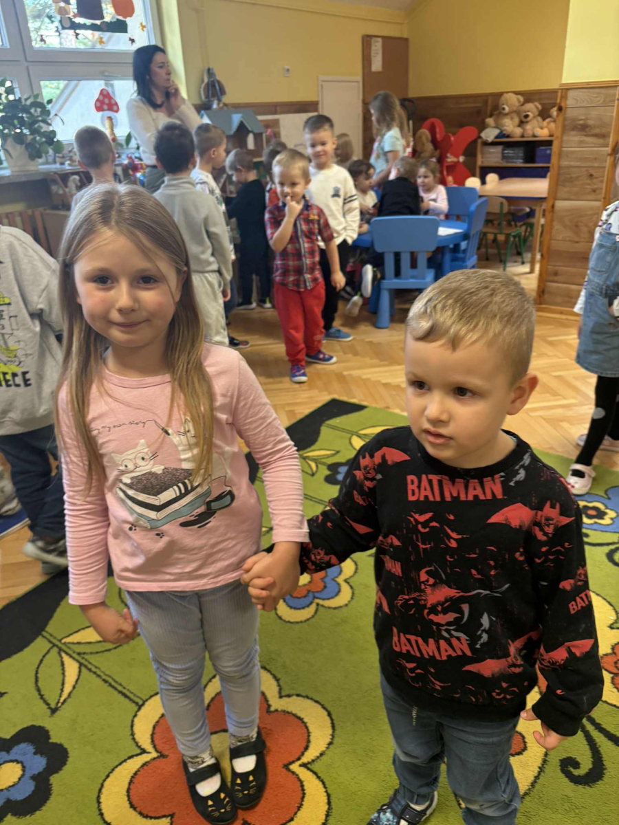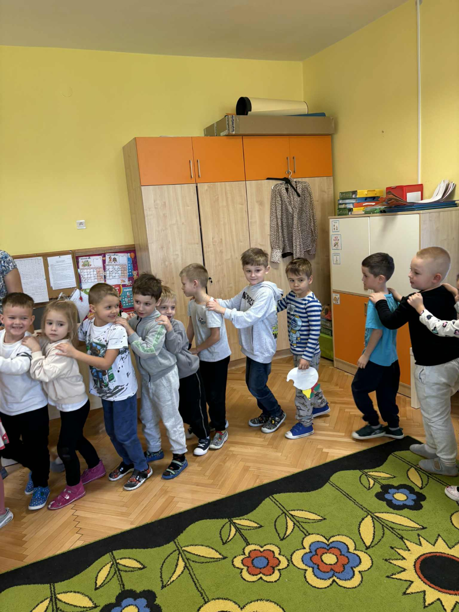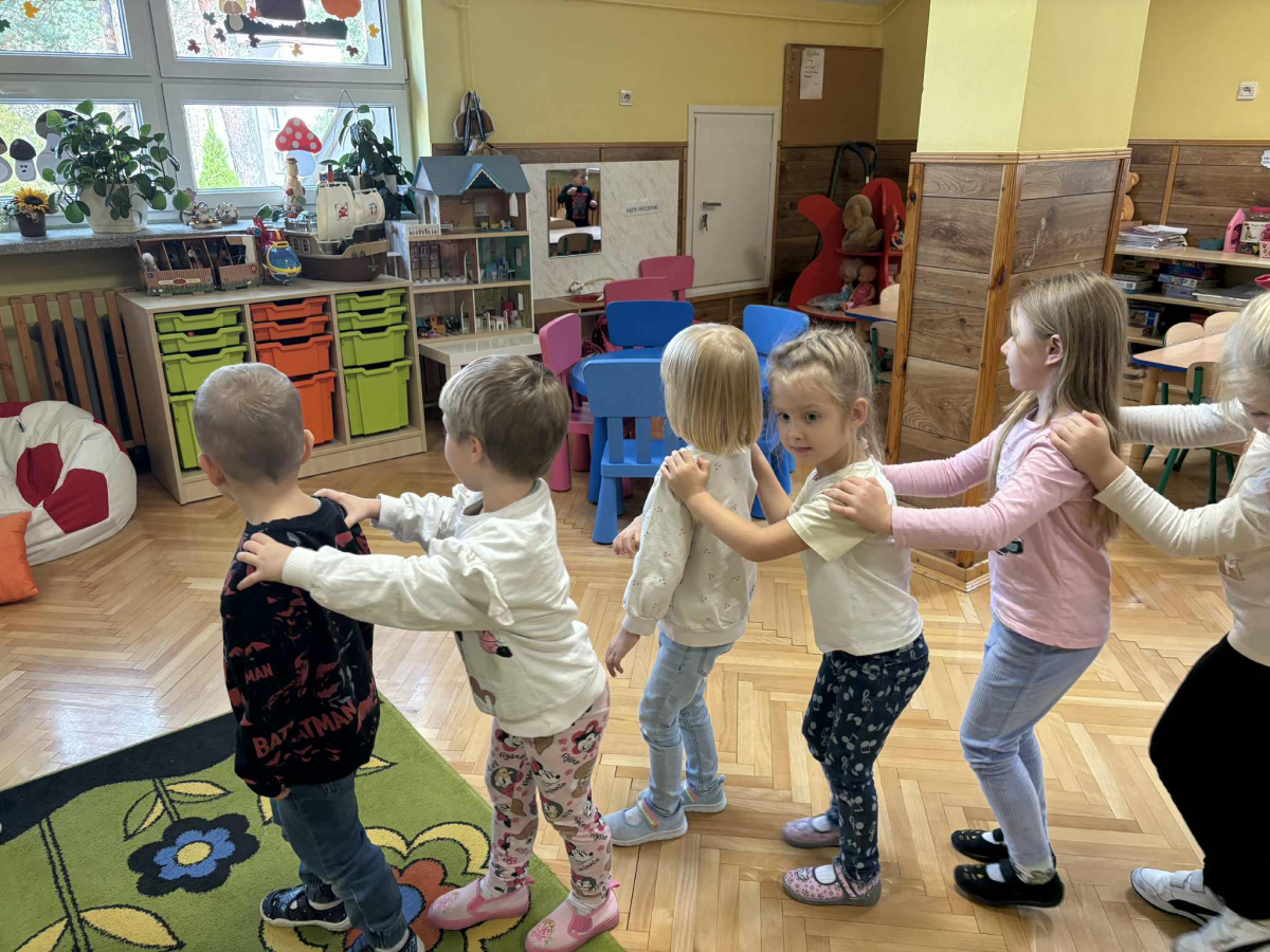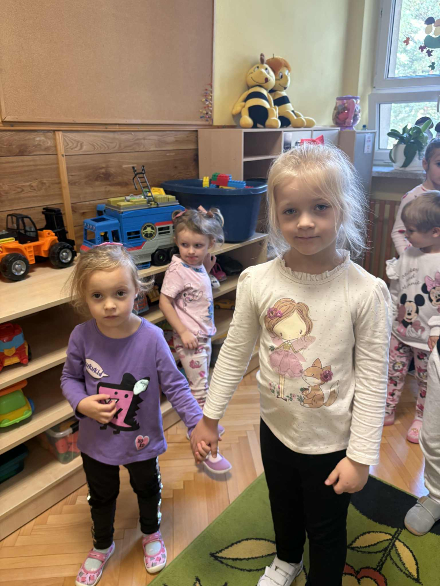 15 października grupa II „Serduszek” dzieci 3- i 4-letnich odwiedziła „starszaków” – dzieci 6-letnie z grupy „Jeżyków”. Jak obyczaj dobry nakazuje „Serduszka” przyniosły dla dzieci prezent – pięknego wyklejonego z darów jesieni jeżyka – symbol grupy. Przedszkolaki z grupy „Jeżyków” przyjęły maluszków miło i serdecznie. Ciepło się nimi zaopiekowały: pokazały im swoją salę, zabawki i pobawiły się w nieznane dotąd „Serduszkom” zabawy muzyczno-ruchowe. Serdecznie dziękujemy za to spotkanie!