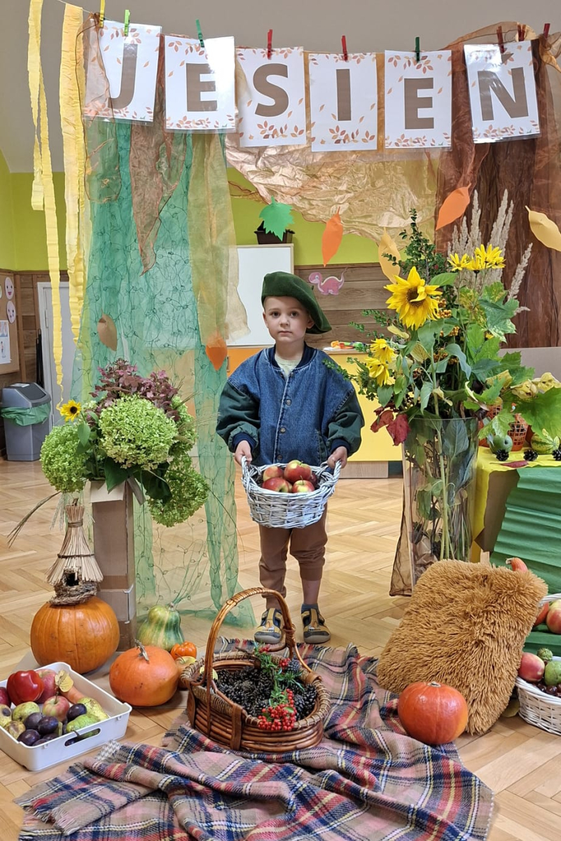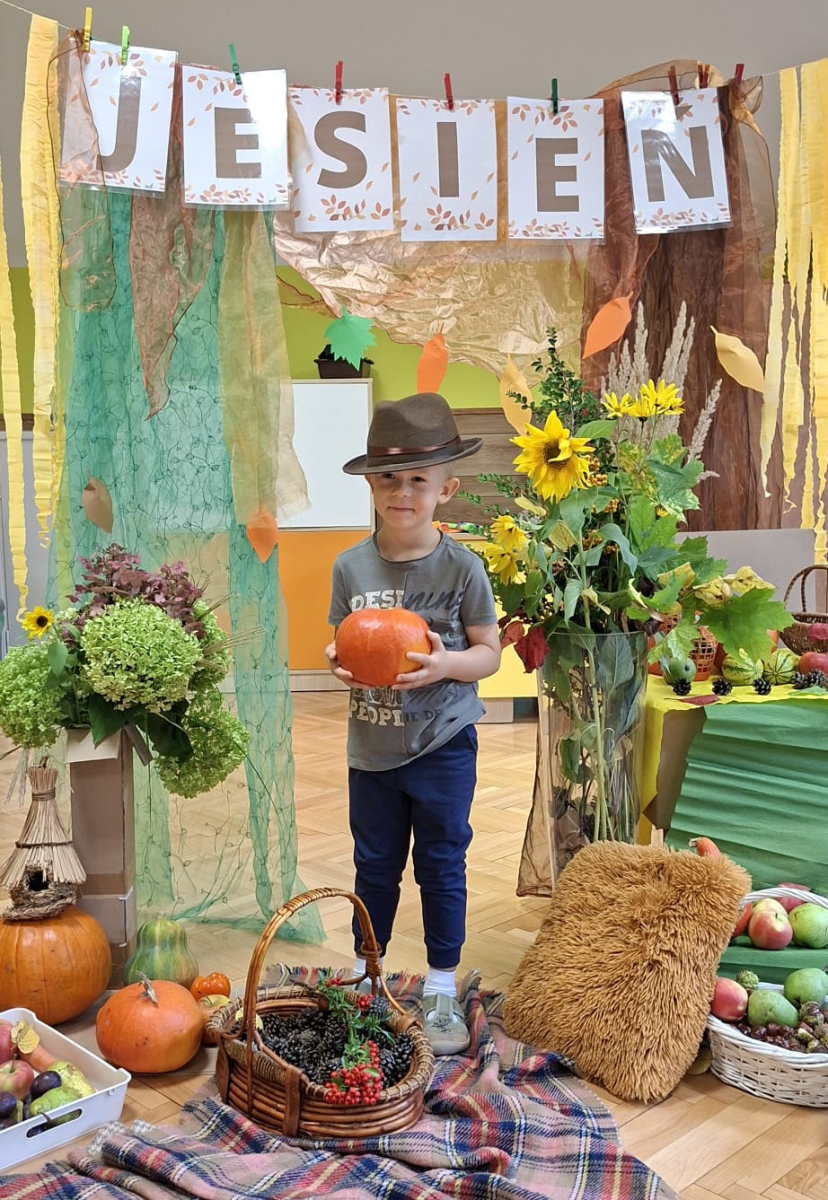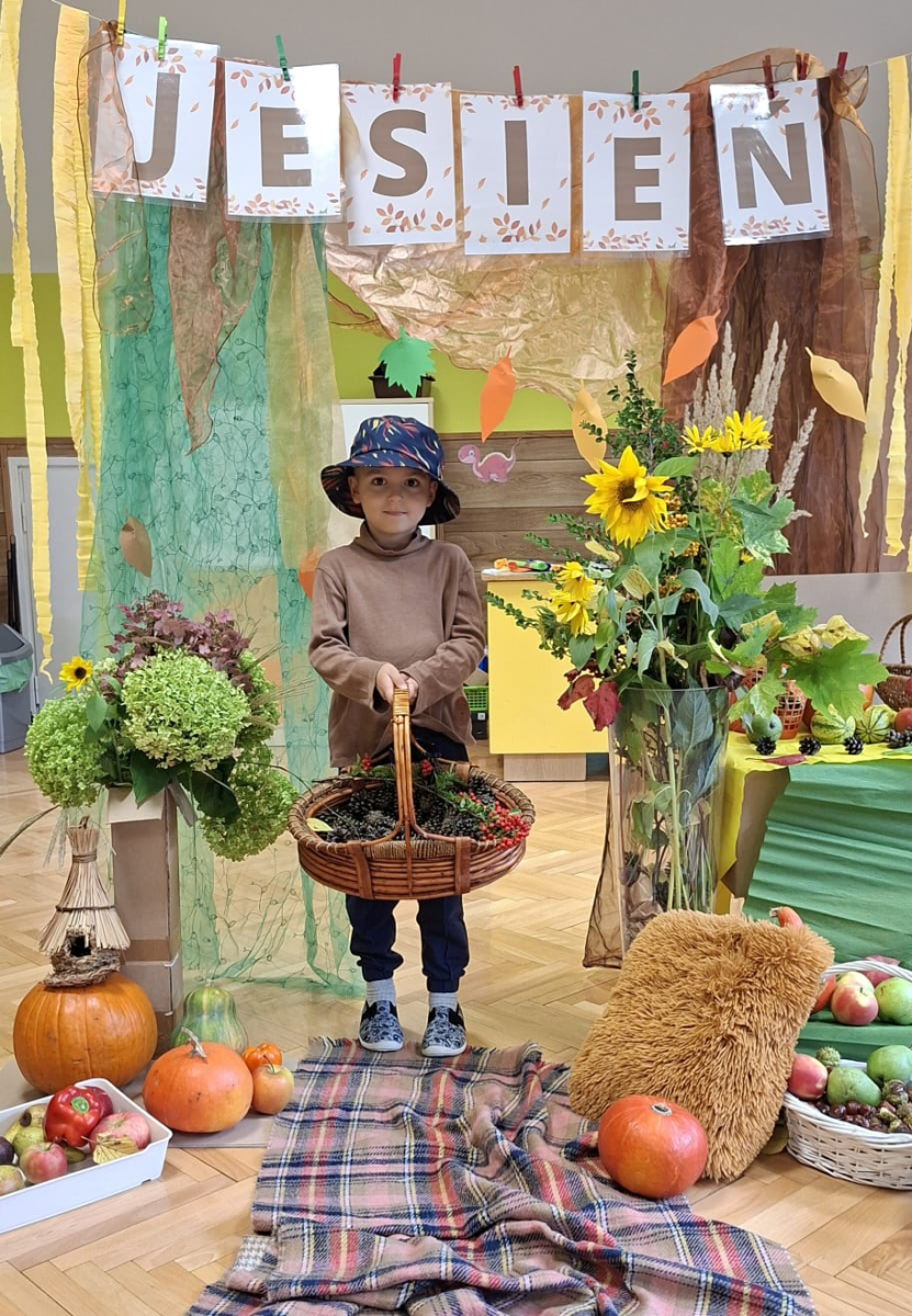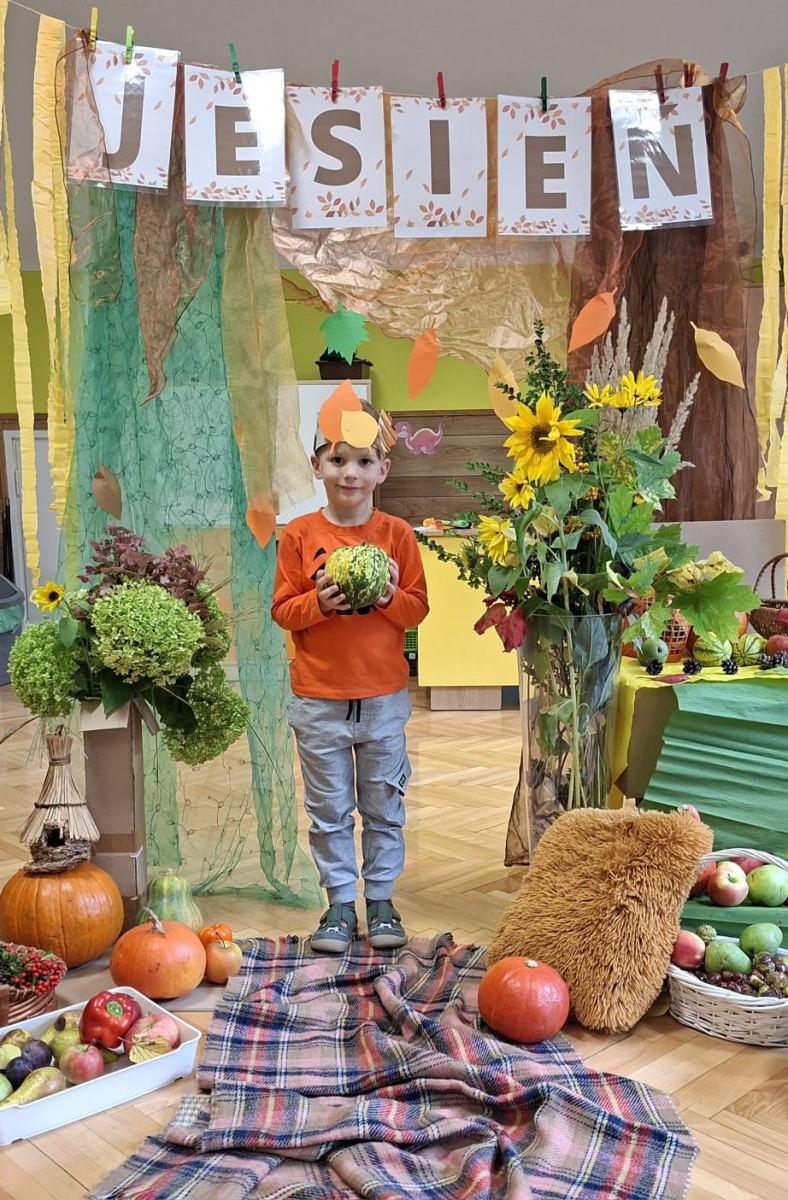 23 września dzieci z grupy „Dinusie” uroczyście przywitały Panią Jesień, która będzie panować przez najbliższe miesiące. W związku z nową porą roku zmienił się wystrój w naszej sali. W kącikach pojawiły się dary jesieni: kolorowe liście, kasztany, żołędzie, owoce i warzywa z sadu. Wiele radości sprawiła dzieciom zabawa w przebieranie się w stroje jesienne a następnie odbył się ”Pokaz mody jesiennej”. Dinusie w tym dniu wykazały się wiedzą na temat nowej pory roku i jej oznak m.in.: zmiana pogody, opadające liście, zbiór owoców i warzyw. Dzieci wspominają ten dzień bardzo miło.