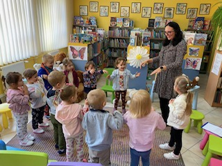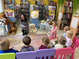 Rozpoczęliśmy w tym roku przygodę z bajkami i baśniami. Nowy program, który będziemy realizować, skupia się na przybliżeniu dzieciom klasycznych bajek z różnych stron świata, uwrażliwieniu na ich przesłania, promowaniu czytelnictwa i współpracy z rodzicami oraz instytucjami lokalnymi. W tym celu udaliśmy się do MBP, gdzie uczestniczyliśmy w ciekawym zajęciu wokół bajki pt. „Złotowłosa i trzy misie”.