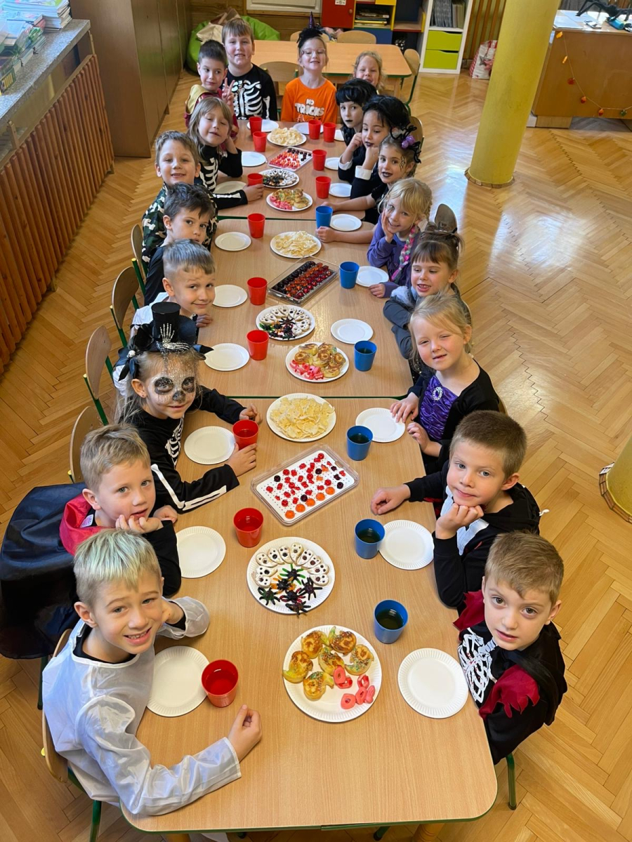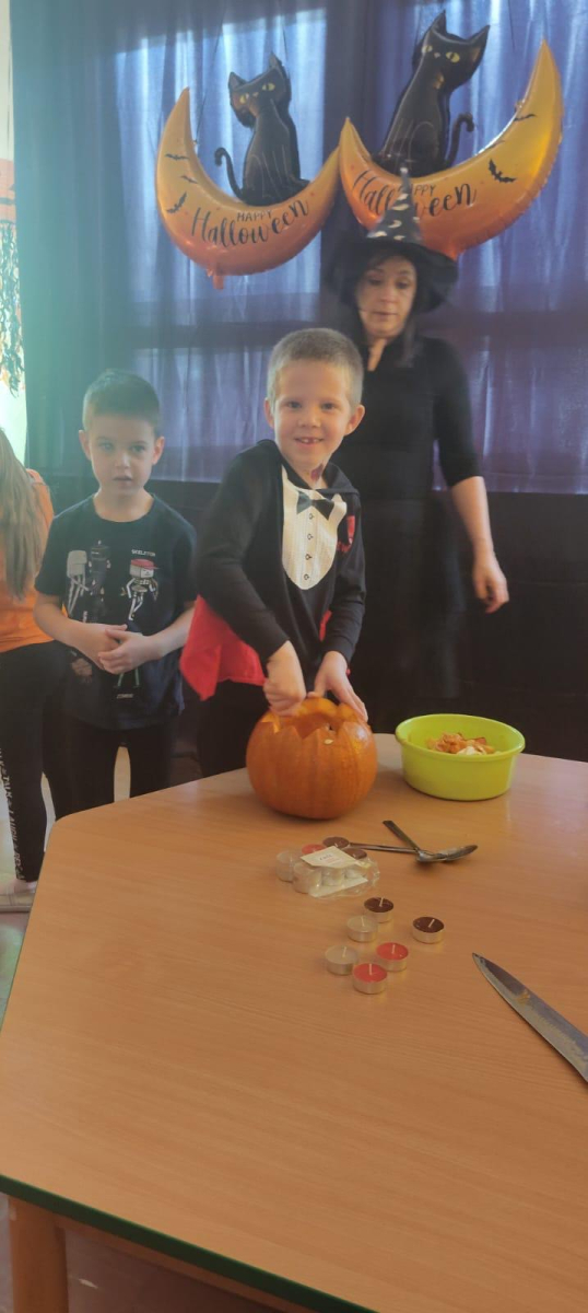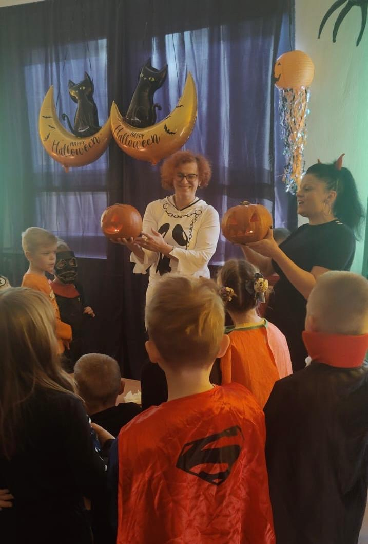 W naszym przedszkolu 29 października odbyło się radosne Święto Dyni połączone z Halloween, w którym uczestniczyły dwie grupy – Jeżyki i Misie. Tego dnia dzieci przyszły ubrane w przepiękne, kolorowe stroje – nie zabrakło zarówno dyniowych przebierańców, jak i halloweenowych postaci. W pięknie przystrojonym holu przedszkolnym czekało na wszystkich mnóstwo atrakcji: tańce przy muzyce, zabawy ruchowe, zajęcia plastyczne oraz pokaz wycinania dyni, który wzbudził ogromne zainteresowanie. Dzieci z wielkim zaangażowaniem brały udział w wydrążaniu dyni, poznając tajniki tworzenia jesiennych lampionów. Nie zabrakło także radości, śmiechu i wspólnej zabawy, a uśmiechy nie znikały z dziecięcych twarzy. Rodzice przygotowali słodki poczęstunek, który był pysznym zakończeniem pełnego emocji dnia. Dzięki licznym zdjęciom i filmikom możemy ponownie wrócić do tych wspaniałych, magicznych chwil.